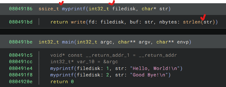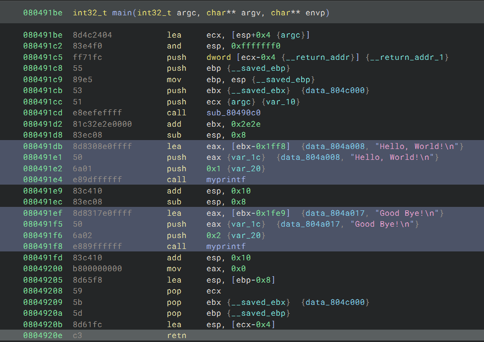 1. eax에 hello world! 문자열 포인터가 들어가있다.