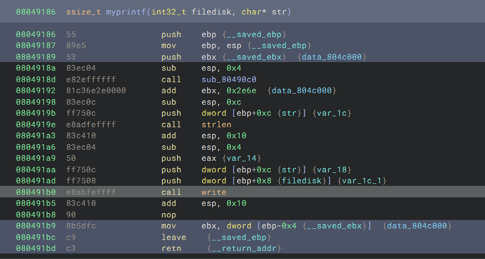= push eip+5 ; ( 다음 실행할 주소를 넣는다. 080491e4 -> 080491e9)